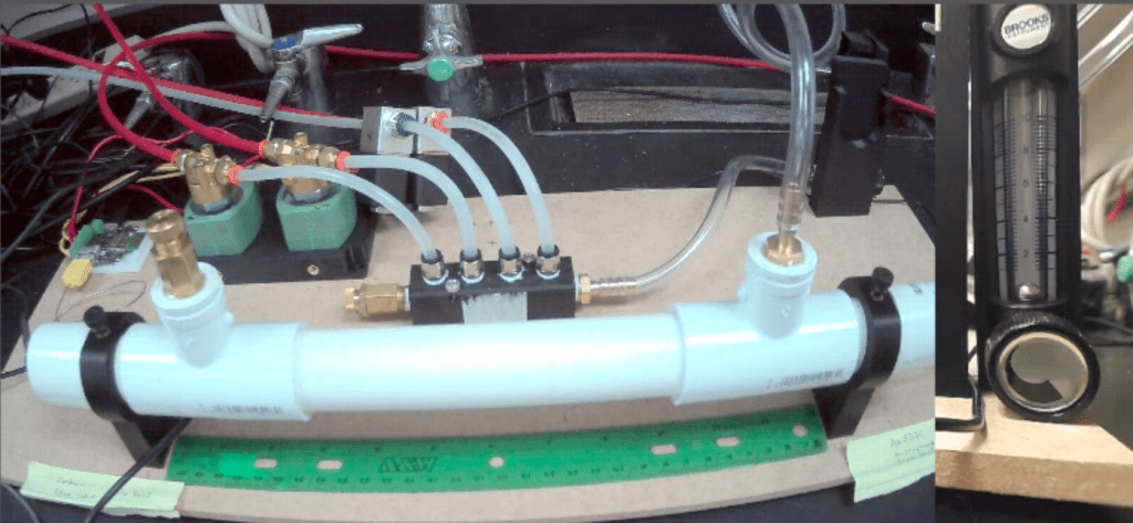 - I would like to be able to have the gases flow through a heat exchanger to allow for variable temperature of the sample (gas).