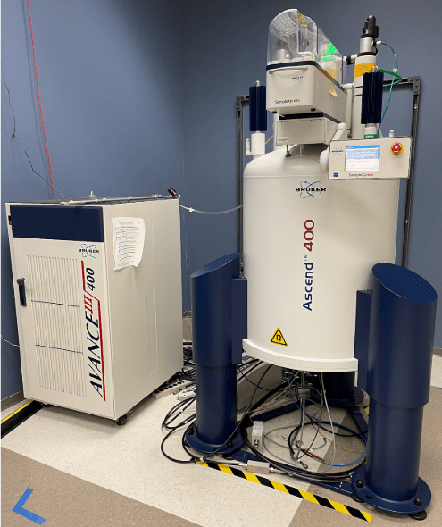 These samples are put into the SampleXpress autosampler on one of the Bruker NMR systems at ASU (ISTB1 L2-63). Below is an image of the Bruker 400 MHz NMR system